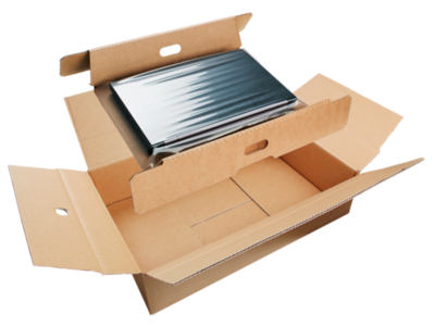 Die versandsichere Fixier- Verpackung für Netbooks und Laptops mit integriertem Zubehörfach