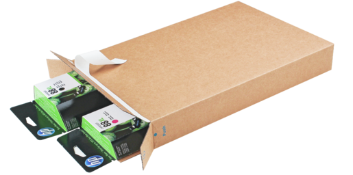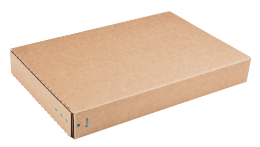 - flachliegend mit Selbstklebeverschluss am Boden und Deckel, mit Aufreißperforation